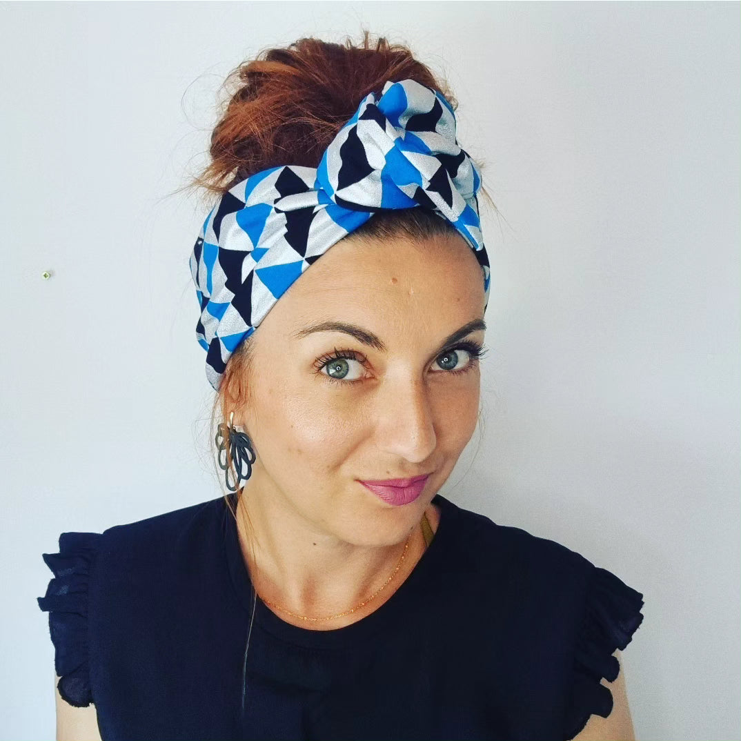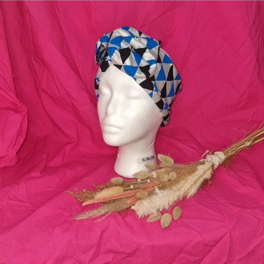 Tissu gris metalisé pailleté, noir et bleu