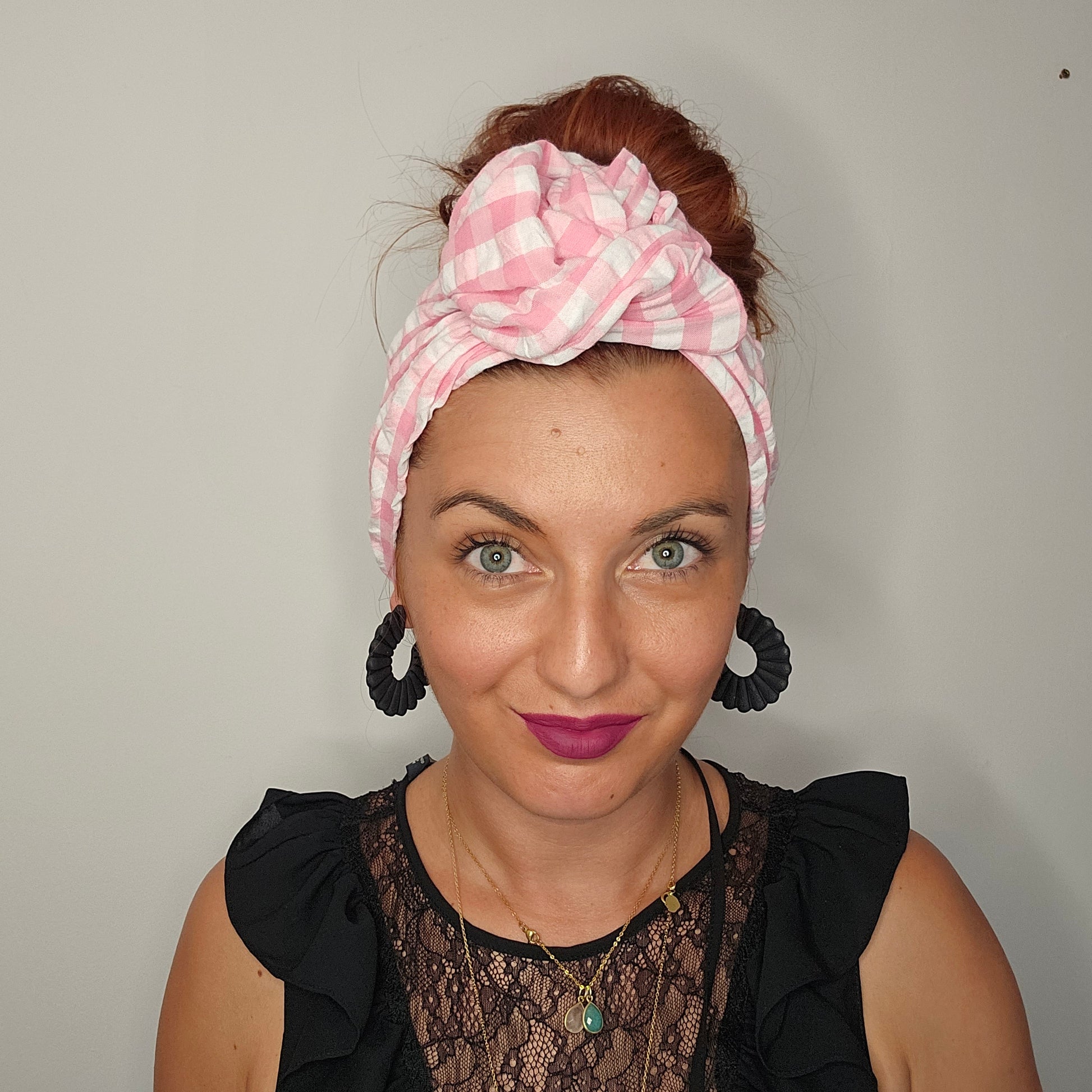 Gaze de coton imprimé rose et blanc vichy